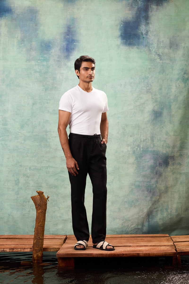 Black Drawstring Linen Trouser