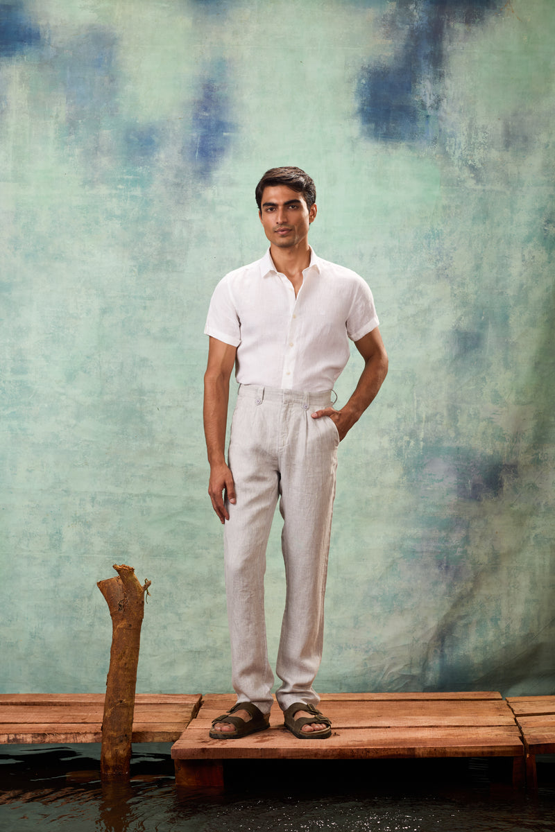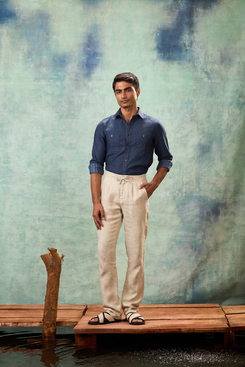 Ecru Drawstring Linen Trouser