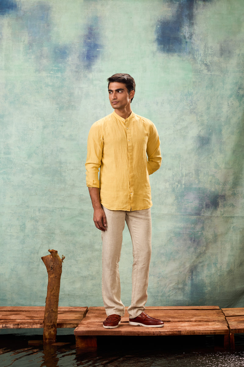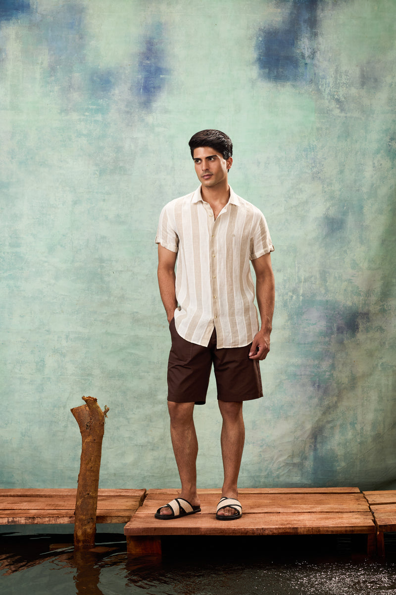 Beige Half Sleeve Linen Shirt