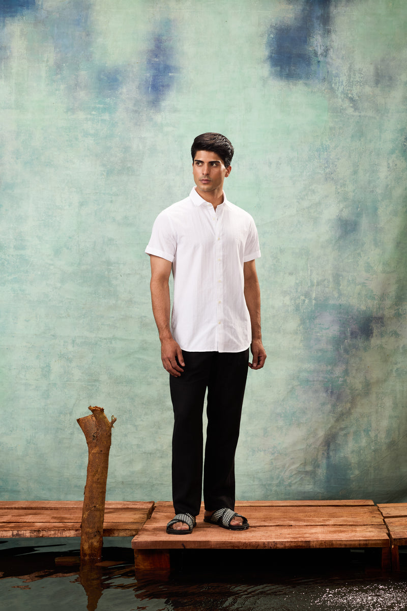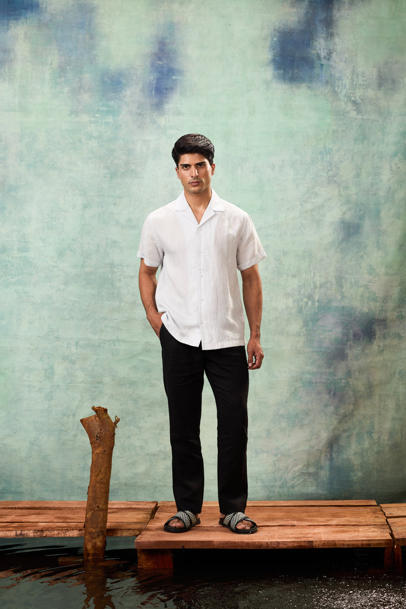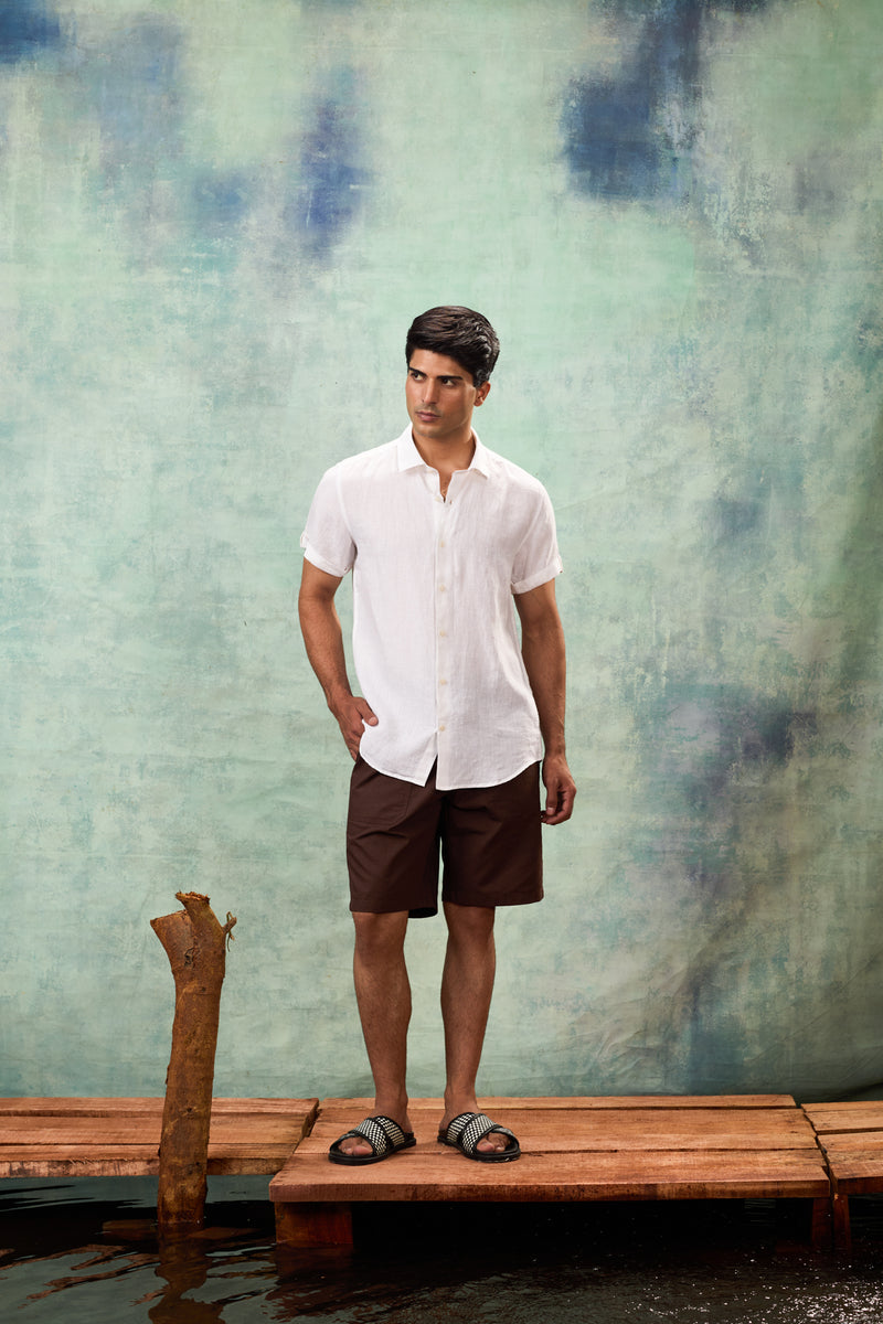 White Half Sleeve Linen Shirt