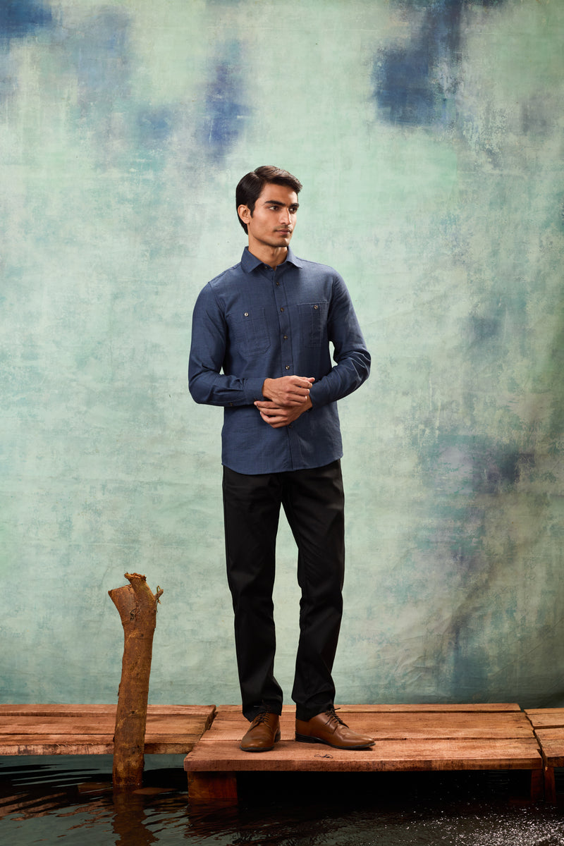 Blue Full Sleeve Safari Shirt