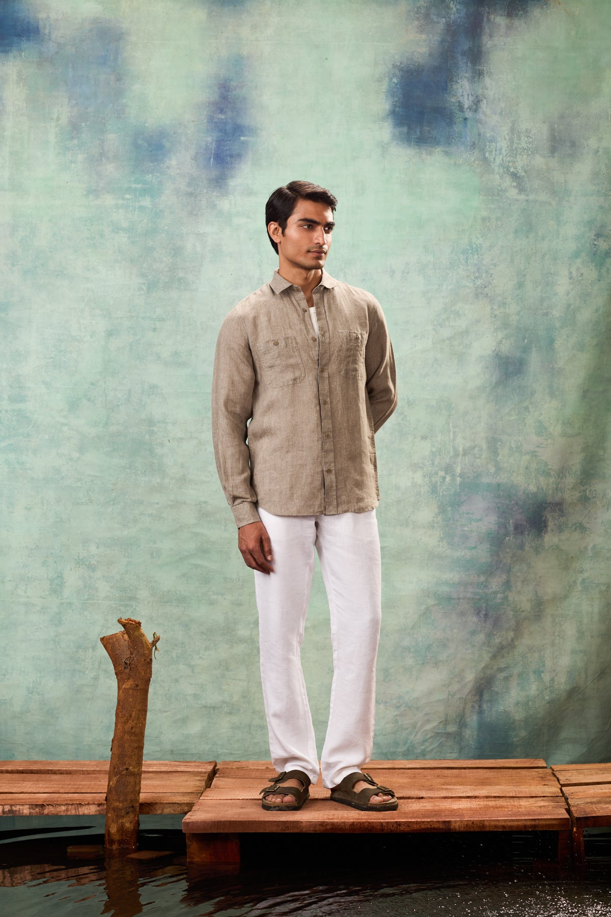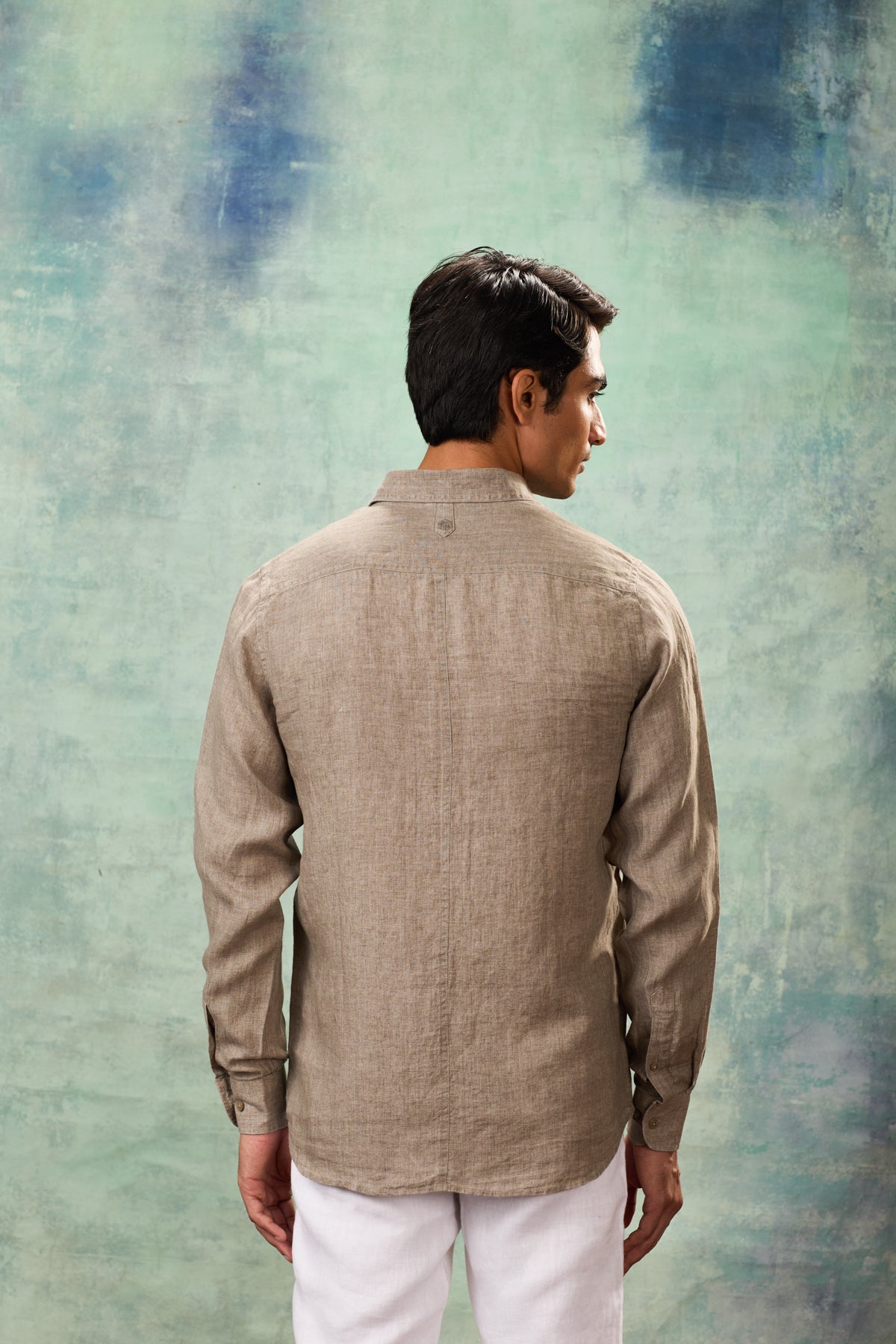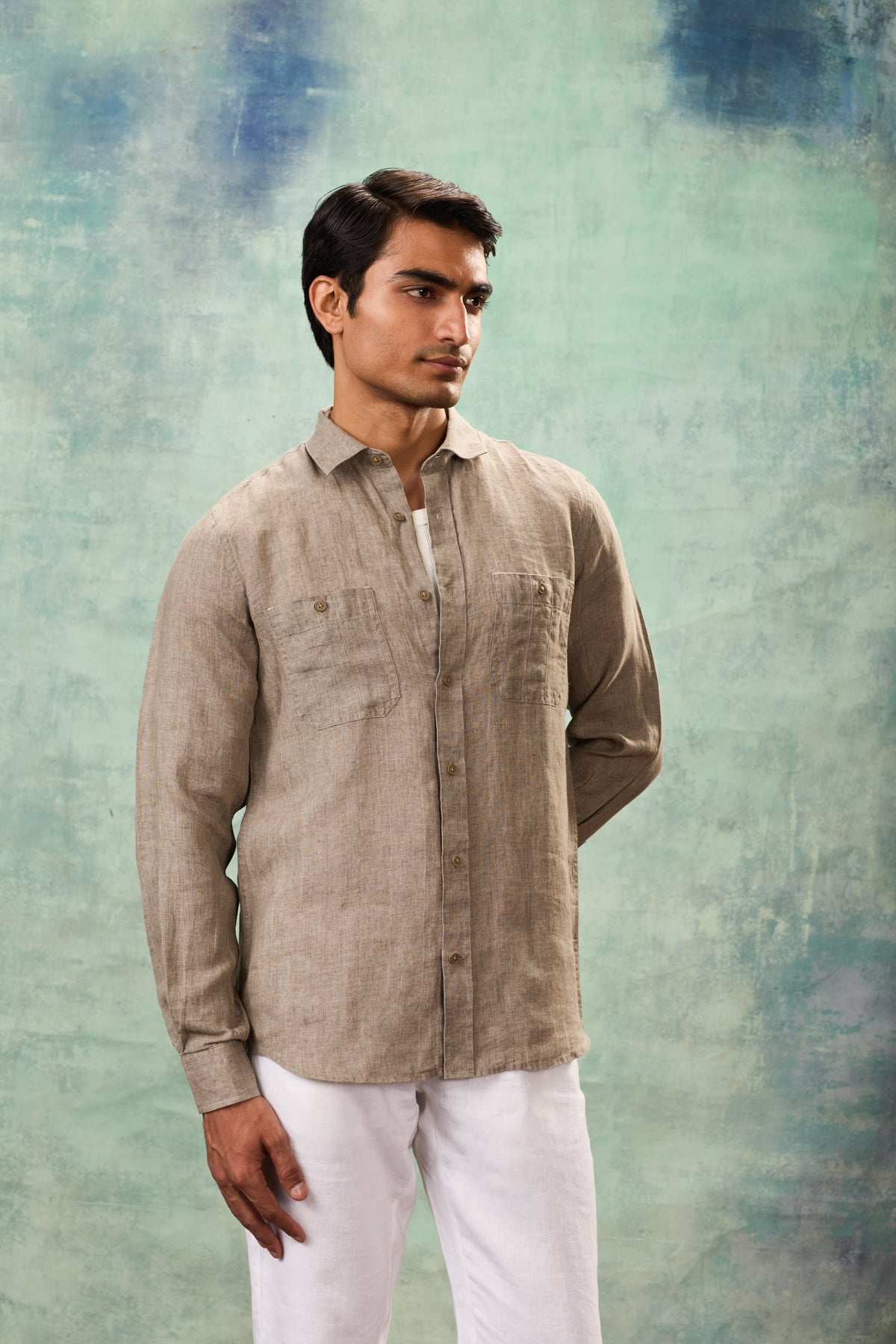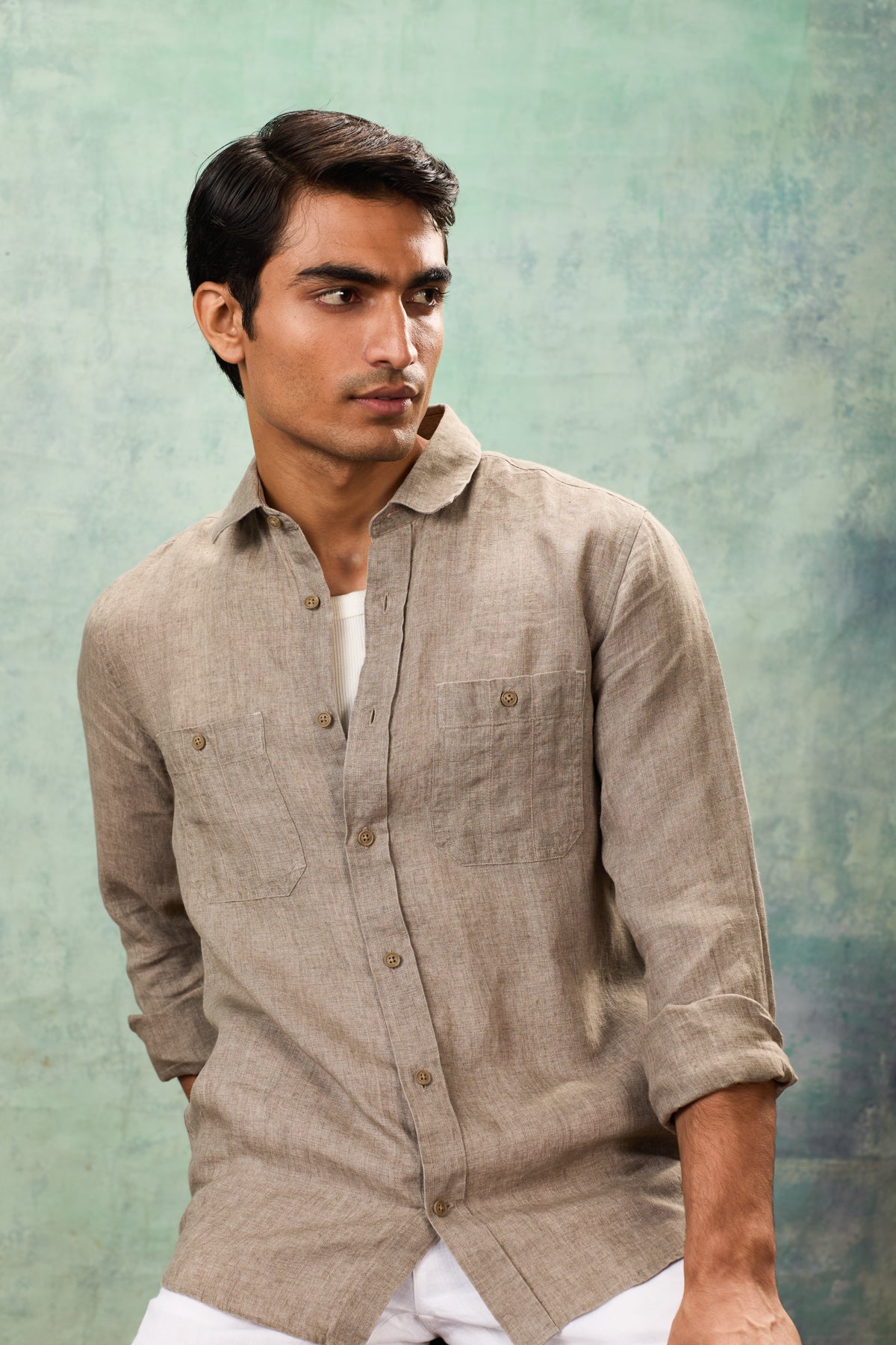This charcoal grey full sleeve safari shirt combines timeless style with functional design. Featuring a refined point collar and double pocket detailing, it offers both elegance and practicality. The button-down front and adjustable cuffs ensure a tailored, comfortable fit, while the rounded hem and center back seam enhance movement and shape. Finished with subtle signature logo embroidery, this shirt is perfect for those who appreciate understated sophistication.