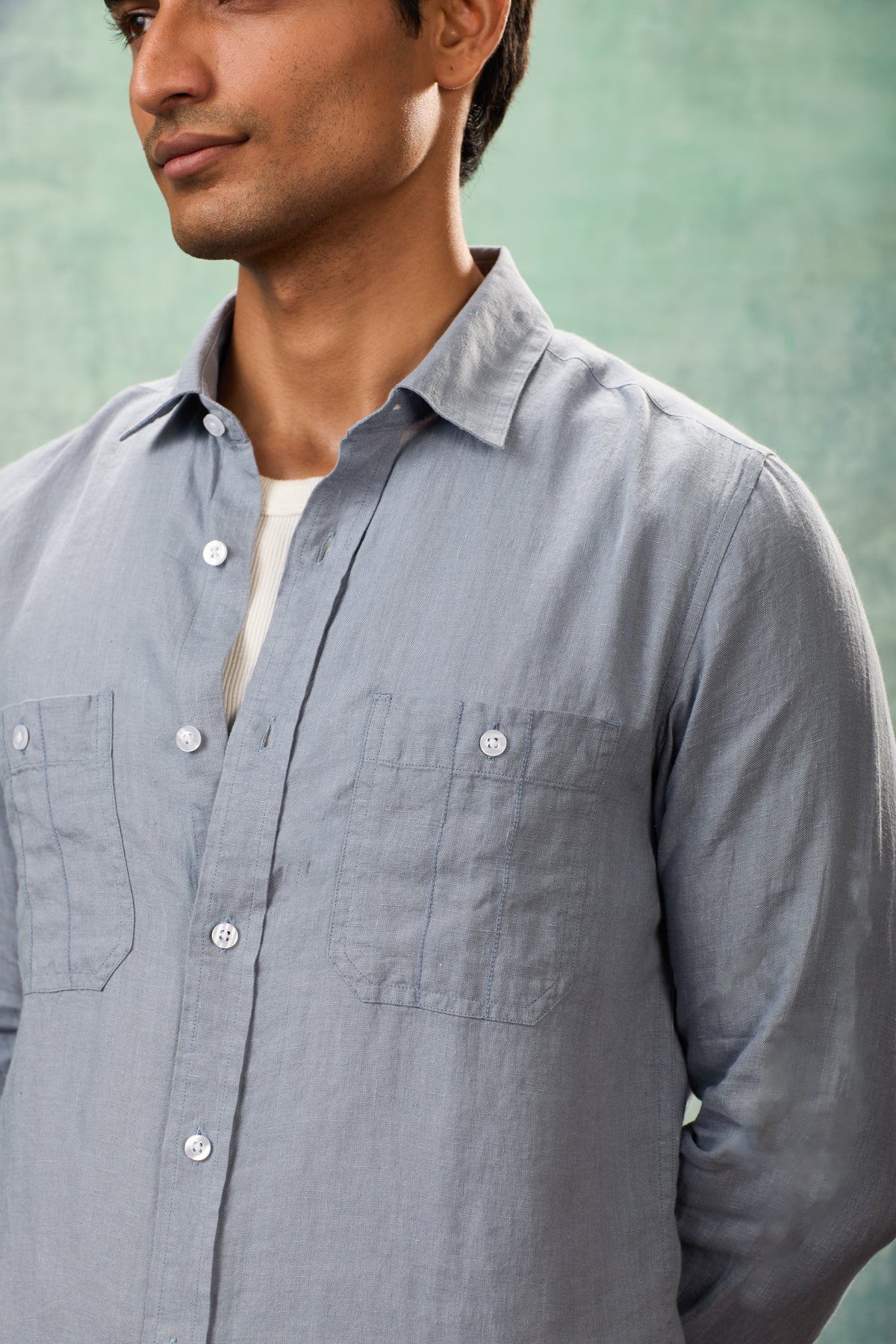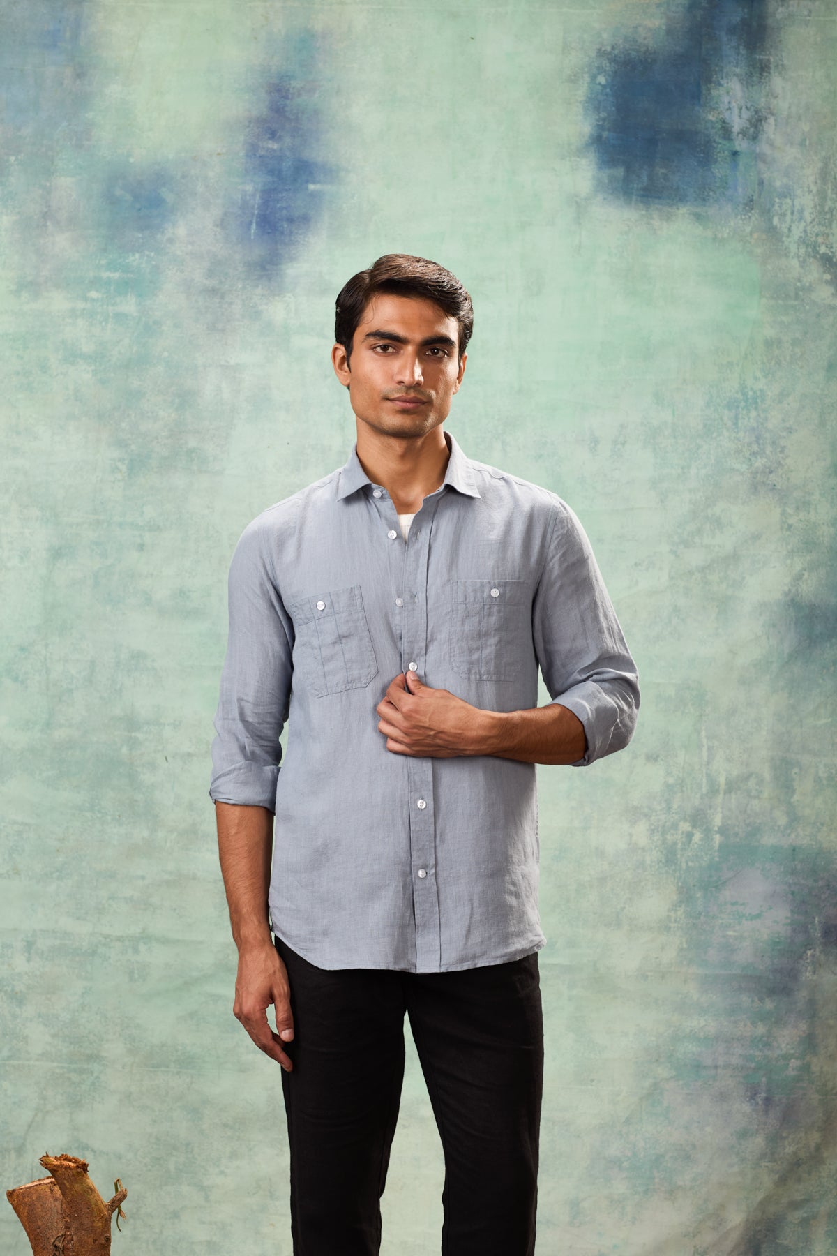 Experience refined comfort with the Blue Full Sleeve Safari Shirt, crafted from breathable linen that keeps you cool in the summer heat. Its lightweight fabric offers superior ventilation, while the tailored design delivers a polished, sophisticated look perfect for warm-weather occasions.