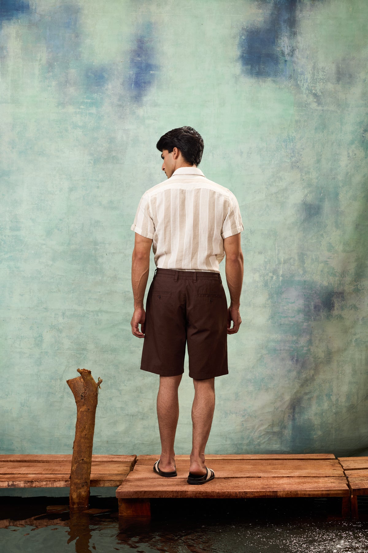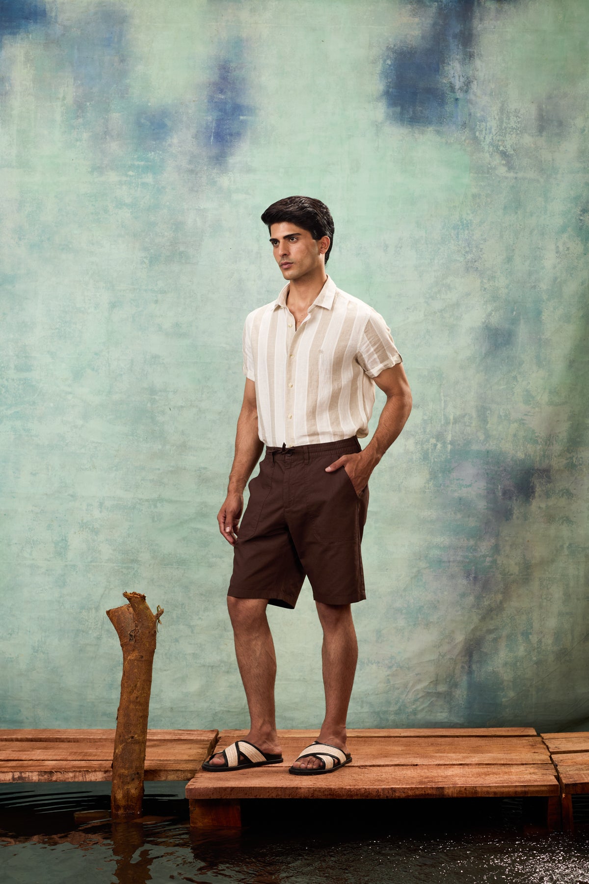 Crafted from a soft, breathable cotton-linen blend, these Brown Bermuda Shorts offer a sophisticated balance of comfort and style. Their lightweight fabric ensures breathability and ease of movement, making them ideal for warm days. Designed with a timeless silhouette, they elevate casual wear while providing lasting comfort.