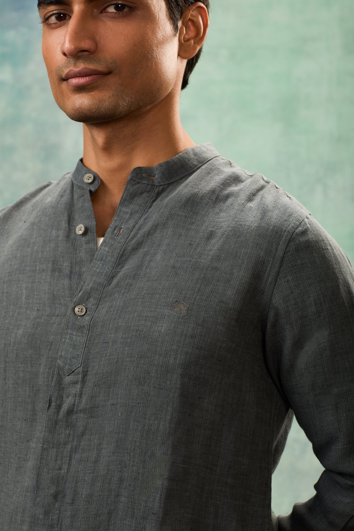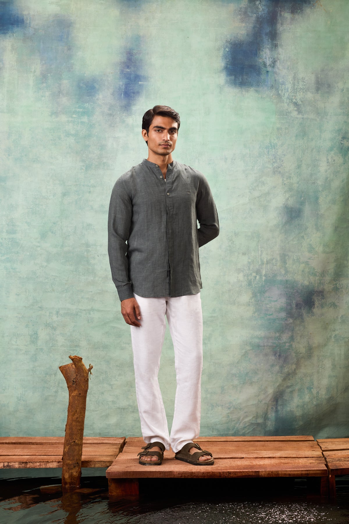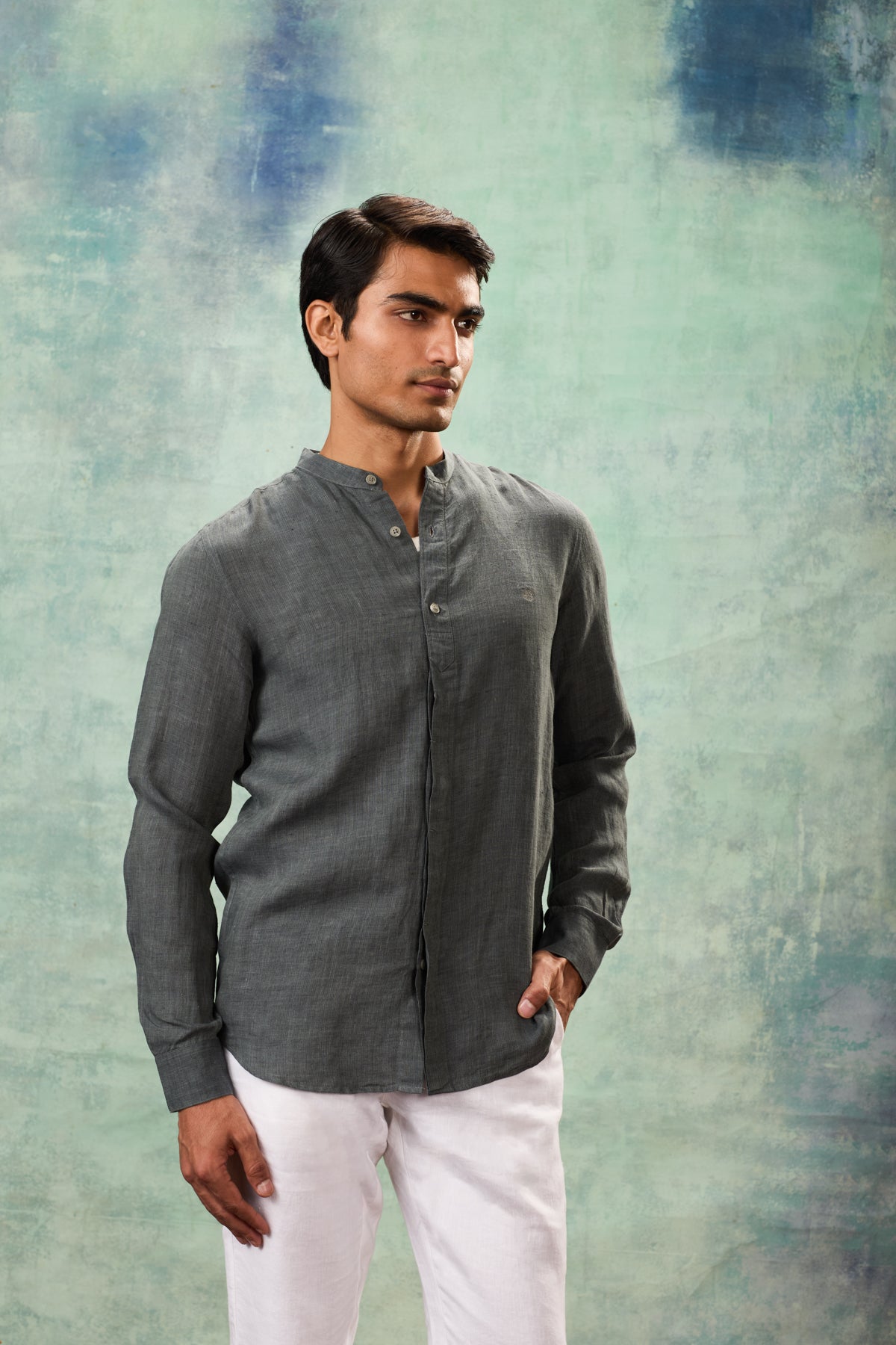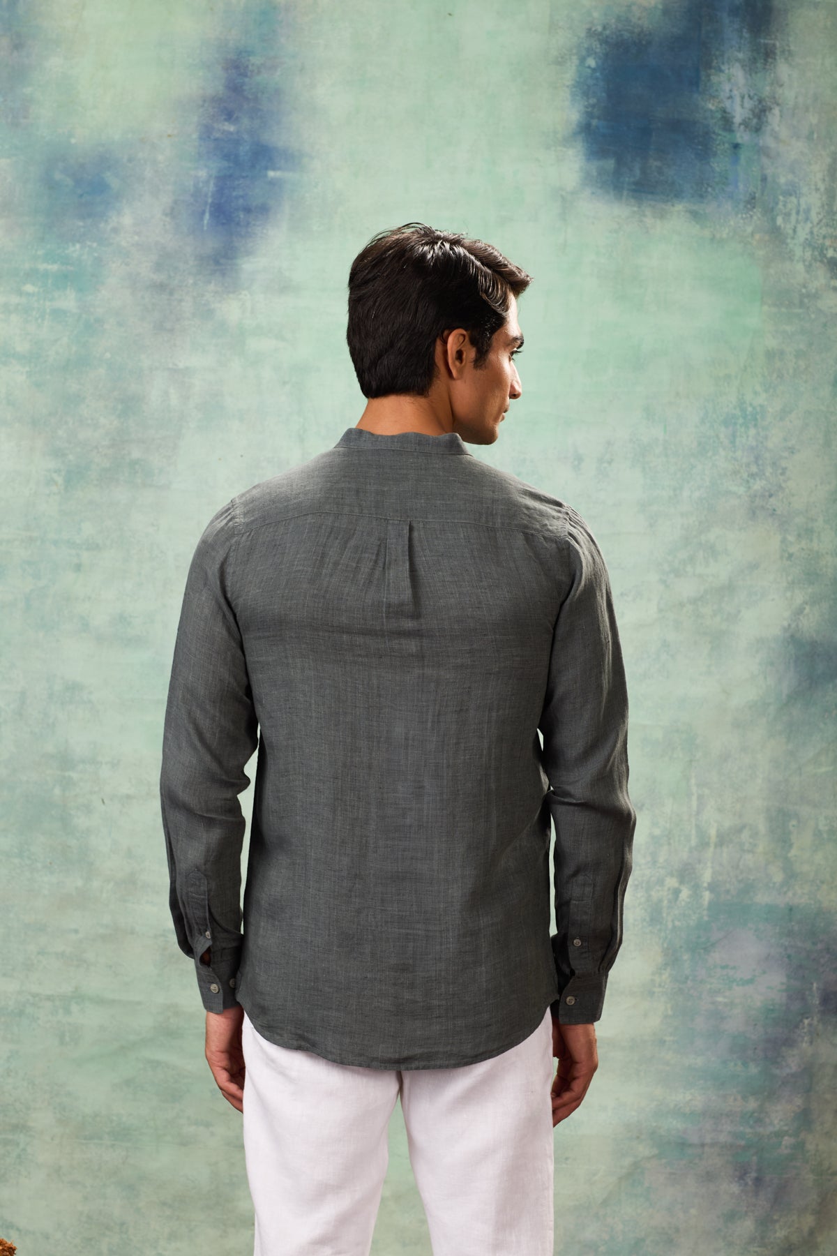 Dark Grey Full Sleeve Mandarin Collar Shirt
