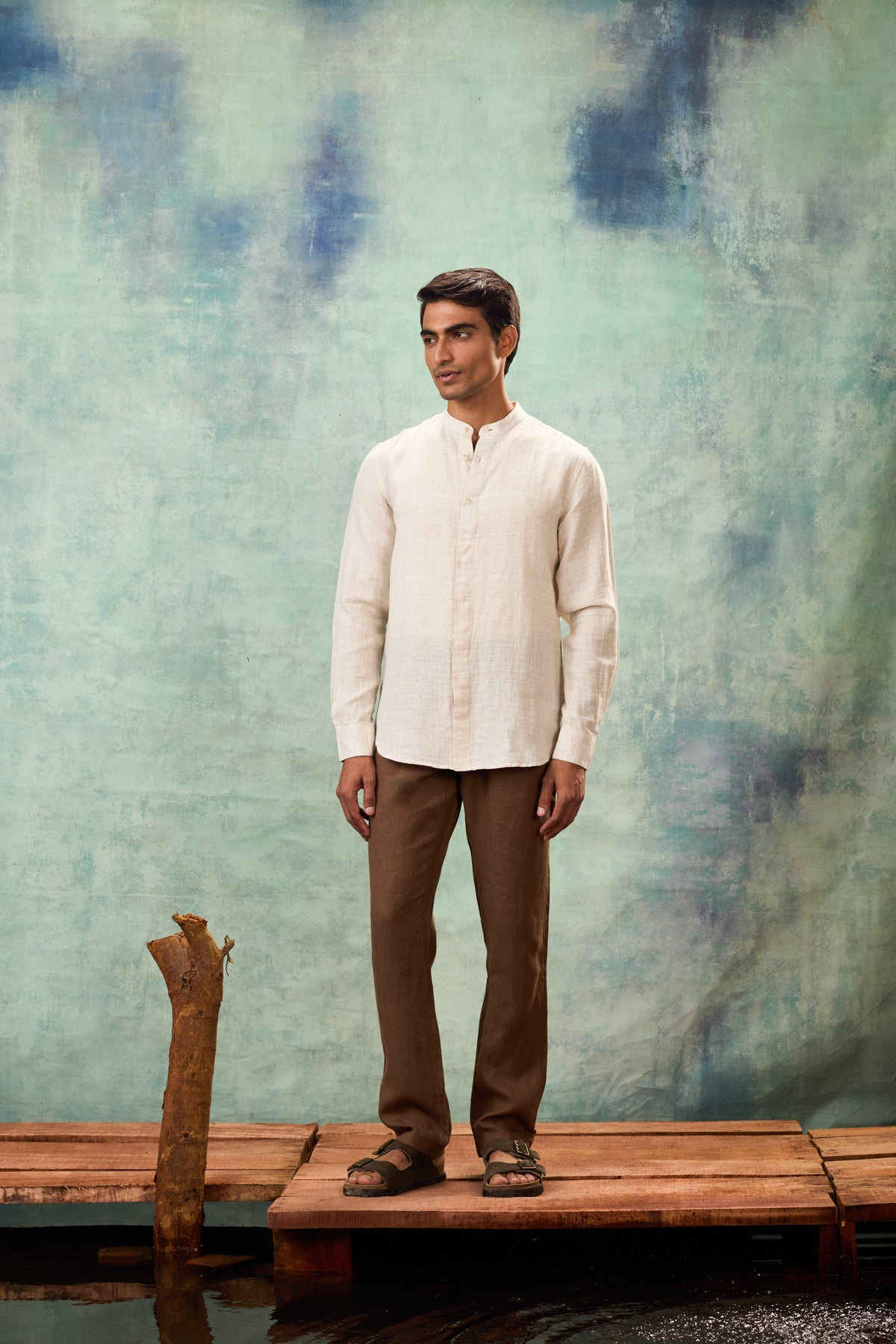 Elevate your everyday style with this modern shirt featuring a sleek Mandarin Collar and a Semi-Concealed Placket for a clean, refined look. Designed in a Comfort Fit, it ensures ease of movement and all-day wearability. The Adjustable Cuff and Rounded Hem add subtle detailing, while the Box Pleated Back Yoke enhances structure and comfort. Finished with our Signature Logo Embroidery and a Clean No-Pocket Design, this shirt is a timeless blend of sophistication and simplicity.