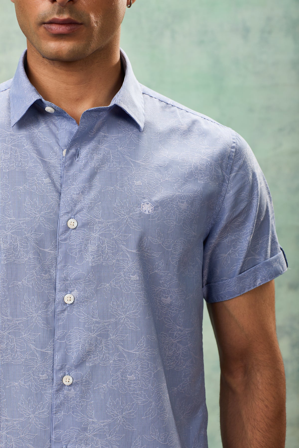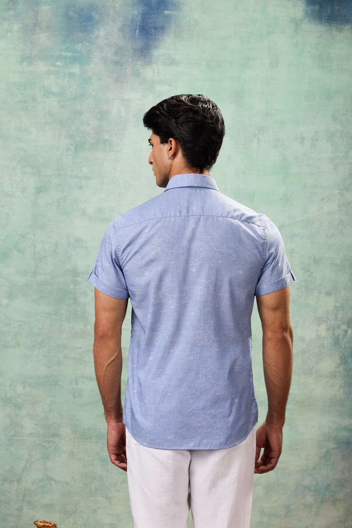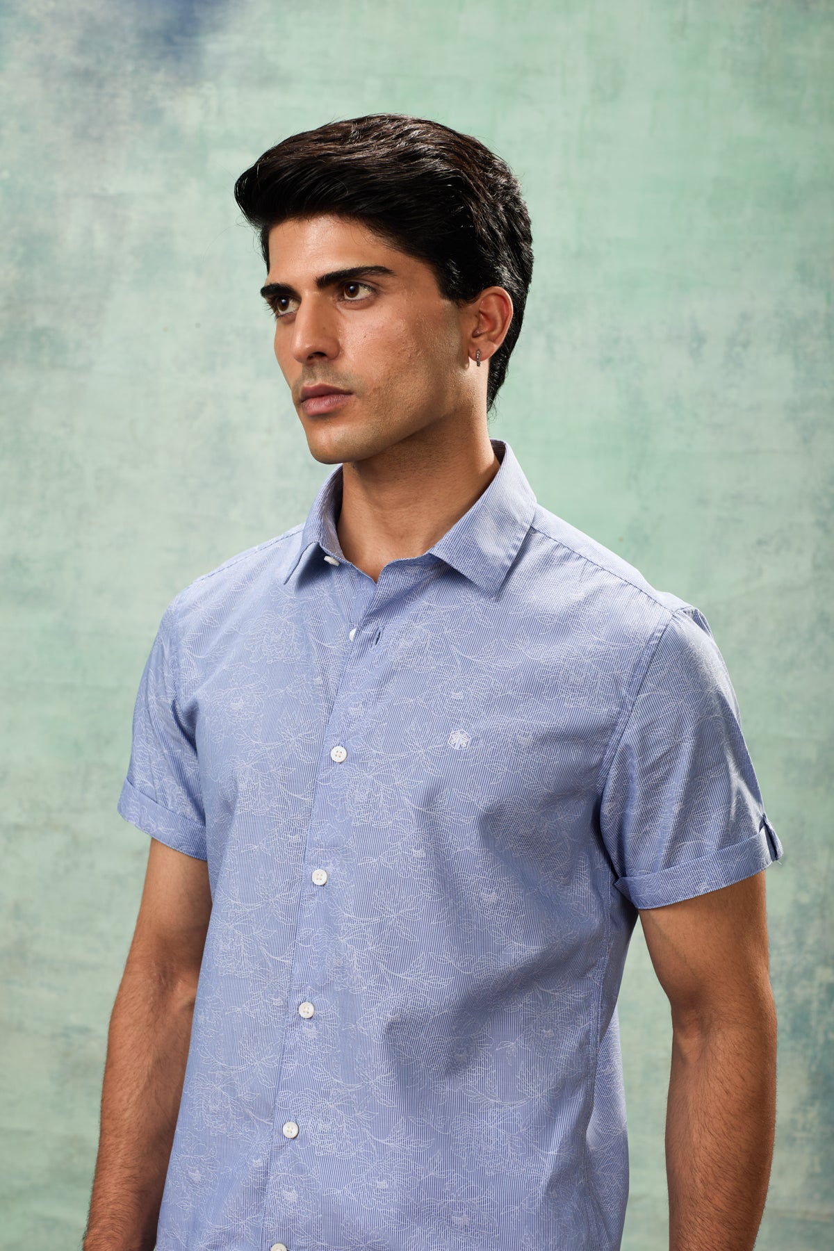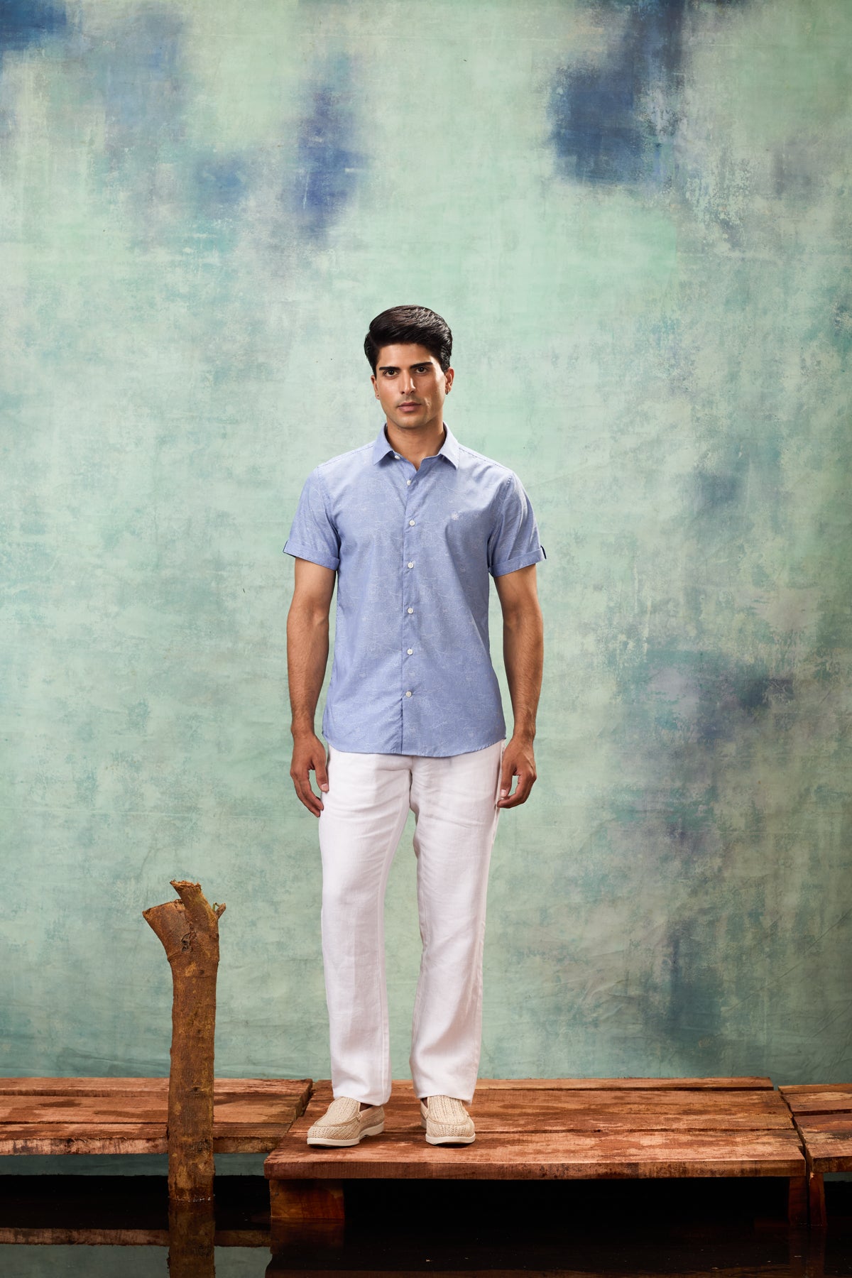This Half Sleeve Cotton Shirt offers a refined silhouette with a point collar and cuffed sleeves featuring a stylish tab. Designed for comfort, its fit ensures ease of movement while maintaining a polished look. The rounded hem adds subtle elegance, complemented by a signature logo embroidery that enhances its sophisticated appeal. Crafted without pockets for a clean, streamlined finish, this shirt is an ideal choice for a smart, casual wardrobe.