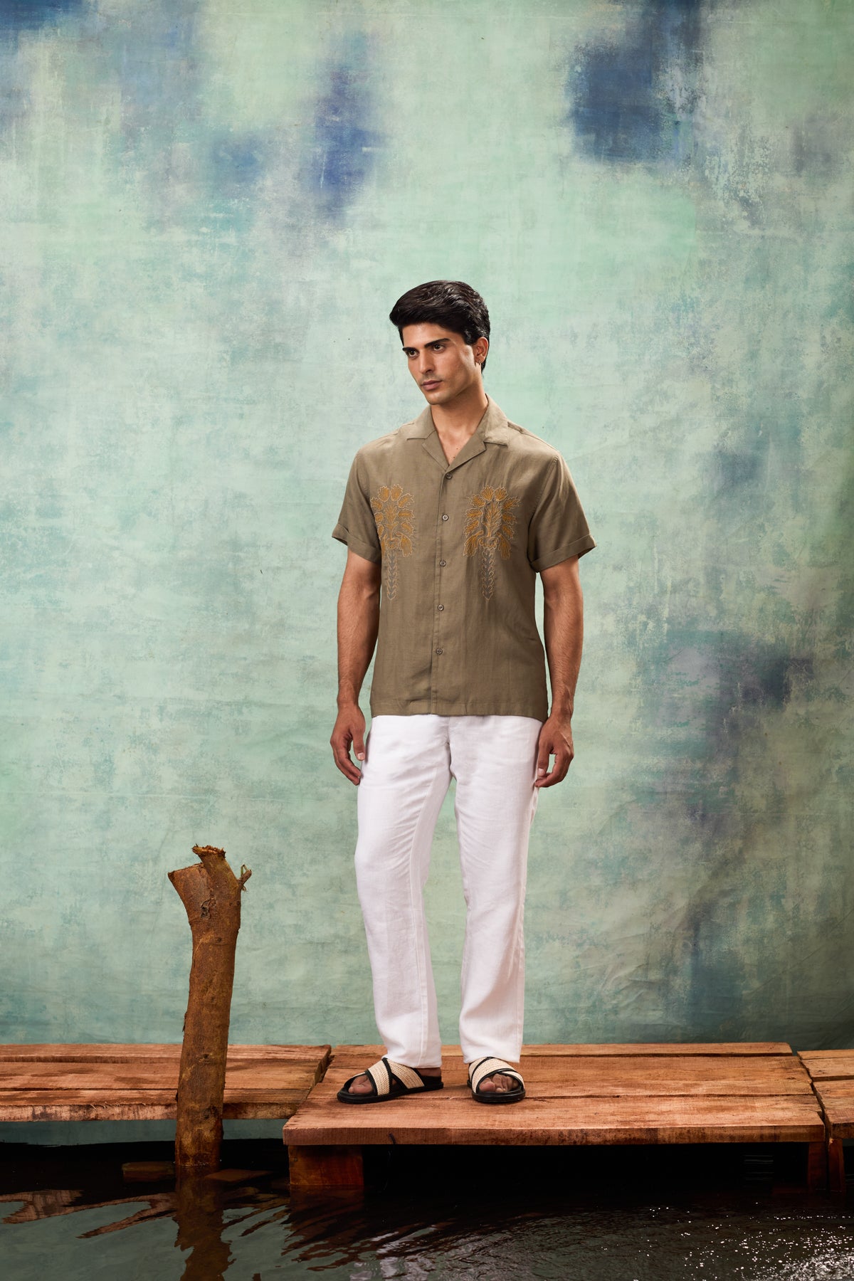 Elevate your resort wardrobe with the Half Sleeve Resort Shirt, featuring a relaxed fit for effortless comfort and intricate embroidery that adds a touch of sophistication. Designed to blend style with ease, this shirt is perfect for leisurely days in refined settings.